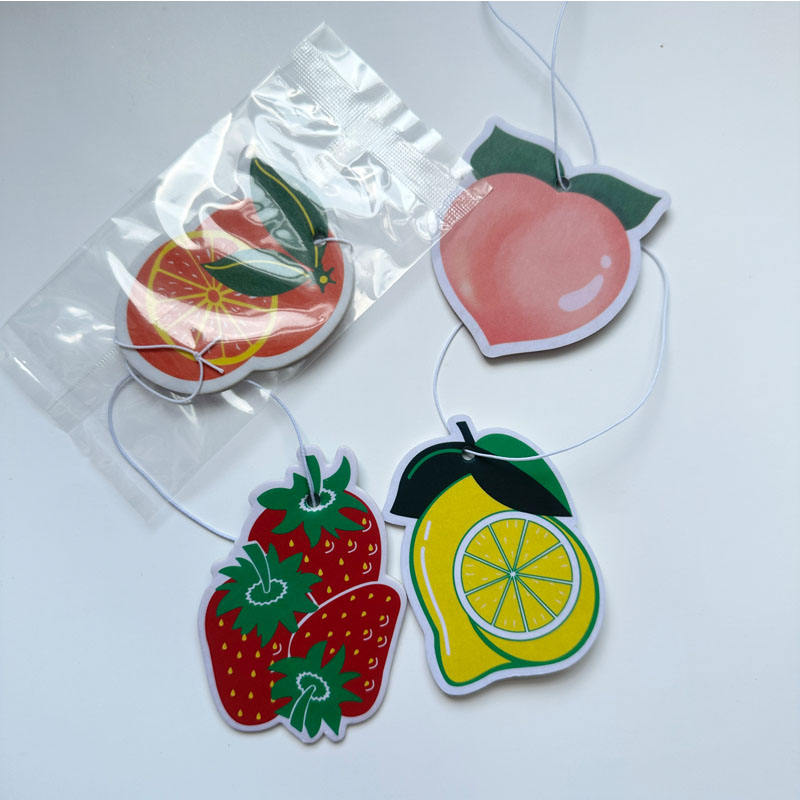 Custom scented paper air fresheners made from absorbent paper with double-sided printing, rope, and fragrance. Available in any shape, 2mm thick, lasting 15–20 days. Ideal for cars, homes, and offices; MOQ 500pcs with free samples available.