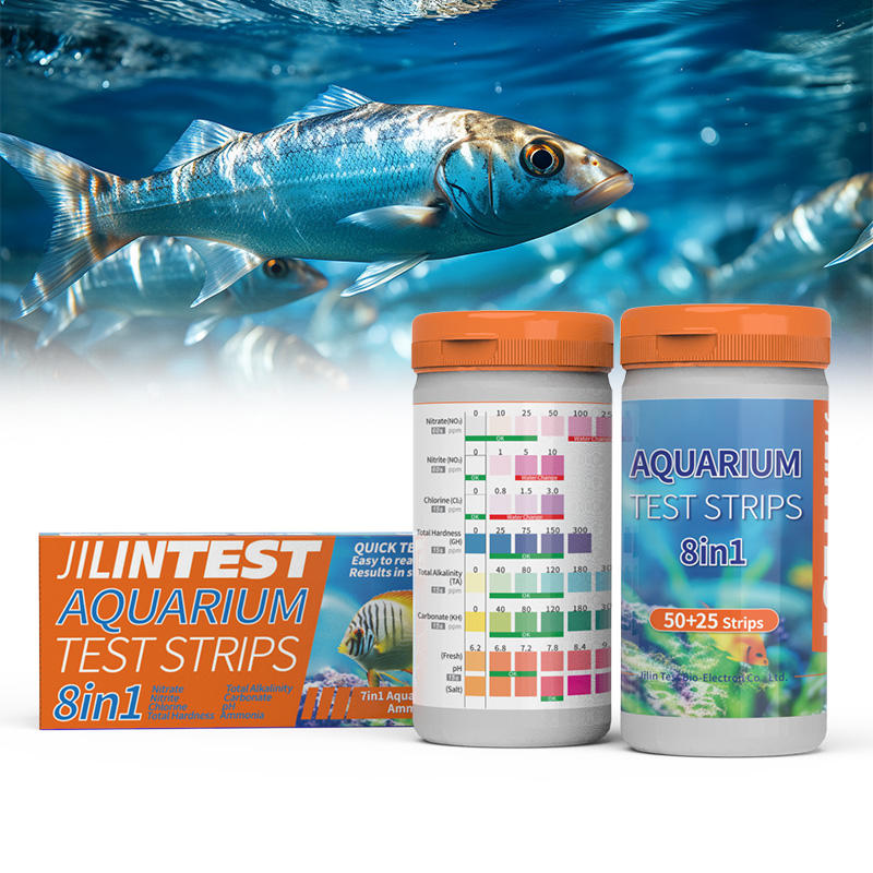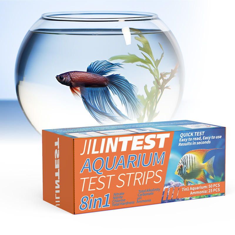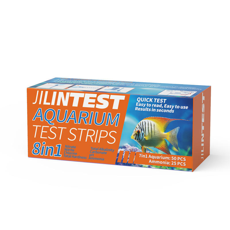 The TSTCHECK 6-in-1 Aquarium Test Strips provide fast and accurate water quality monitoring. Each PET strip measures parameters like hardness, chlorine, nitrite, nitrate, sulfate, alkalinity, pH, and ammonia nitrogen. Packed in bottles of 100 strips, they are easy to use and come with a 2-year shelf life.
