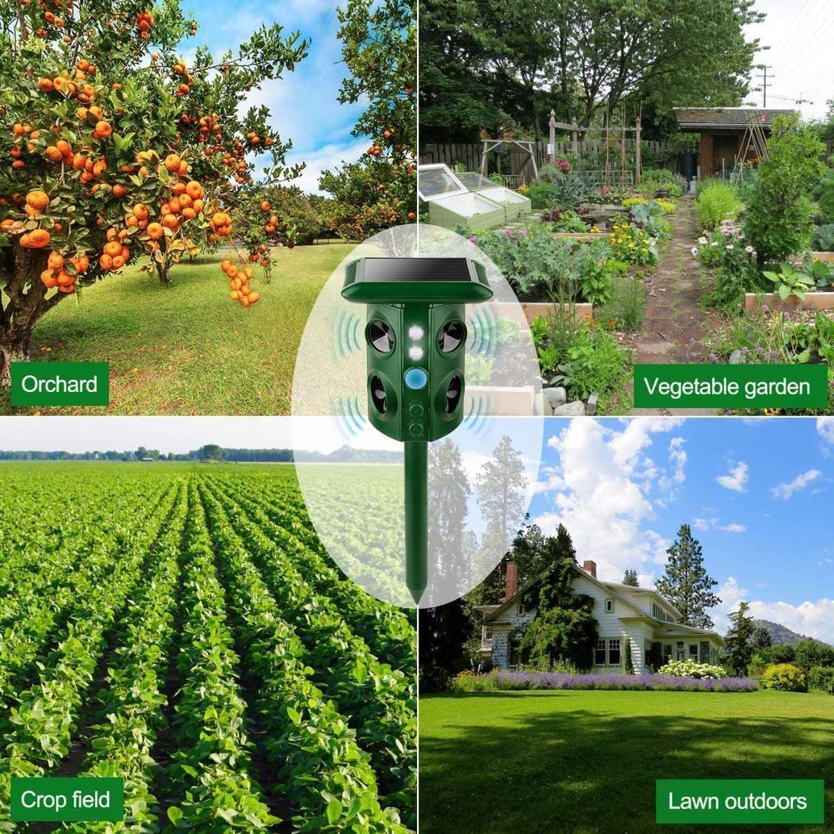 Solar Panel Ultrasonic Animal Repeller – Anti Cat, Dog, Bird, Snake & Mice with 4-Speaker Design