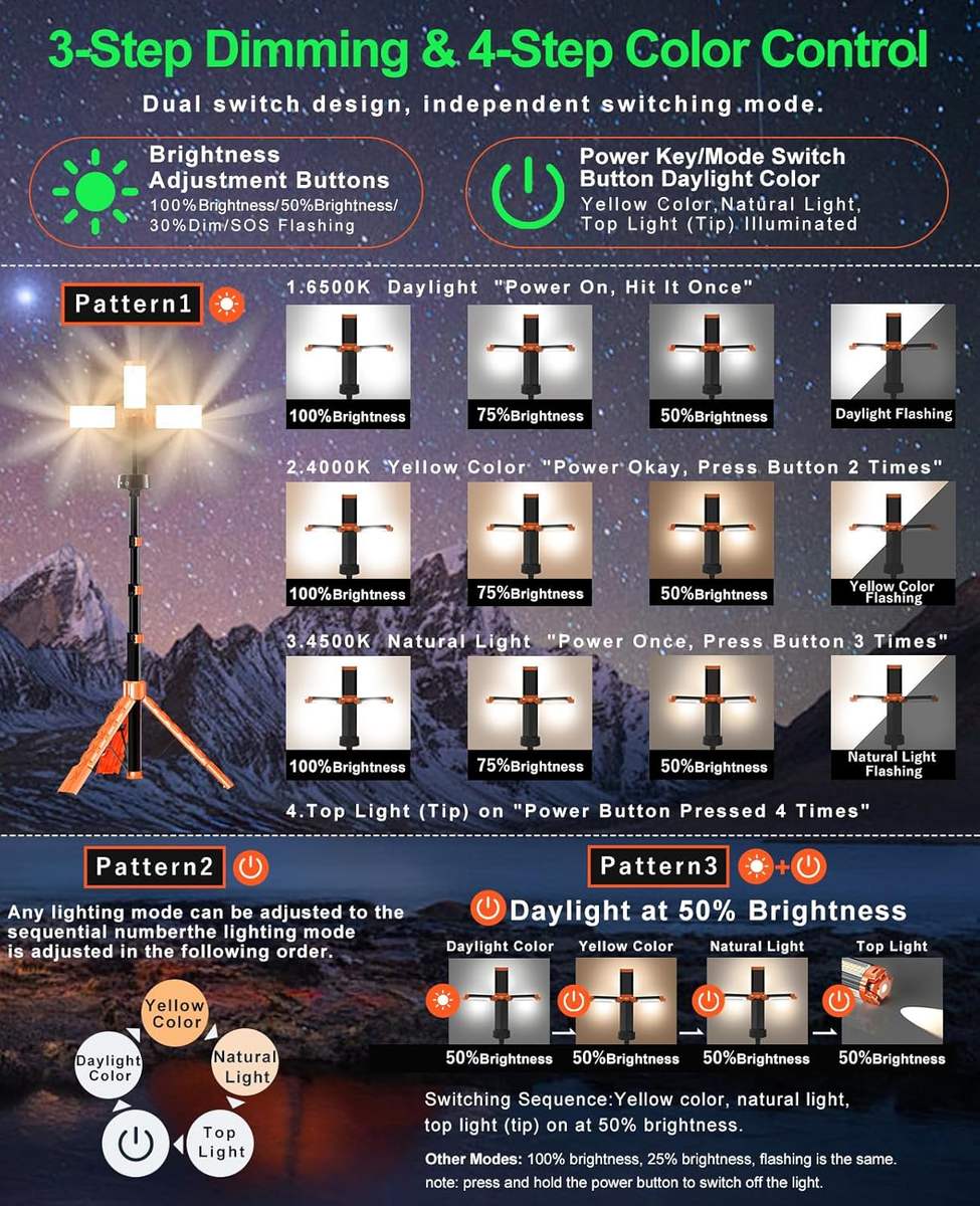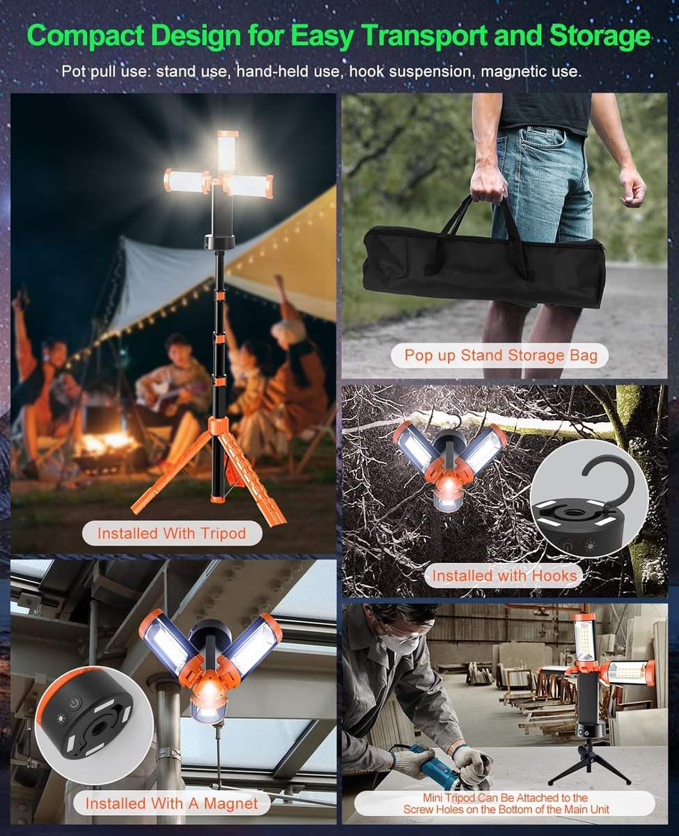 FUXIN WD-3100 USB Rechargeable Cordless Work Light – Built with durable aluminum alloy and a built-in battery, this portable LED light delivers 3000 lumens brightness with a wide 180° beam angle. Featuring dimmable daylight white (6000K) lighting, IP44 water resistance, and a long lifespan of up to 12,000 hours, it’s ideal for camping, fishing, traveling, hiking, or outdoor work. Equipped with Type-C charging and an adjustable design, this cordless light offers convenience, durability, and powerful illumination wherever you go.