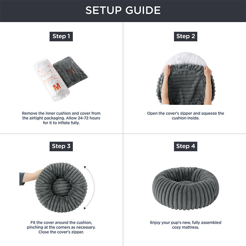 The Faux Fur Donut Dog Bed is crafted from soft corduroy fleece, offering warmth and comfort for pets. Its donut-shaped design provides a sense of security, making it suitable for dogs and cats of all sizes. Logo customization is available.